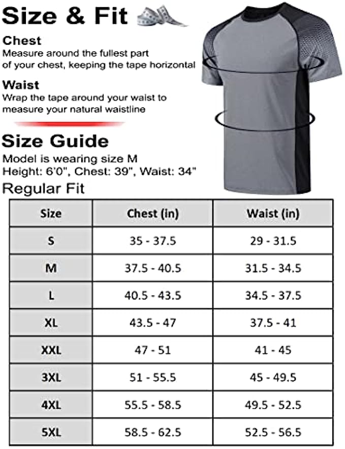 • VARIETY & VALUE - Set of 5 men's premium short sleeve t shirts in different colors and styles. Versatile athletic shirts for every man's wardrobe. Designs engineered for comfort and performance. Ideal wear for running, weight-training, bodybuilding, or even just everyday activities.