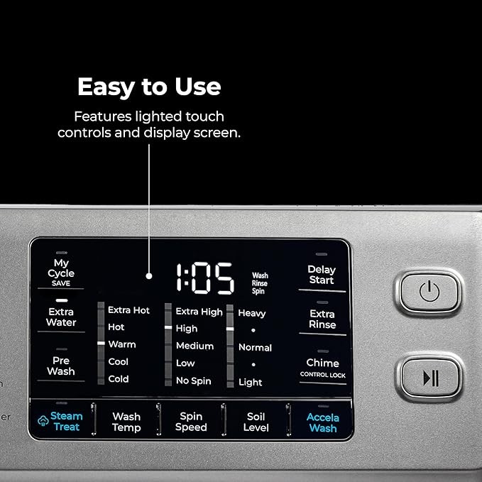 • Easy to Operate: Use the intuitive light-touch controls to select the load and cycle options that match the fabric types in each load. Plus, the convenient LED lights provides time remaining and cycle status information